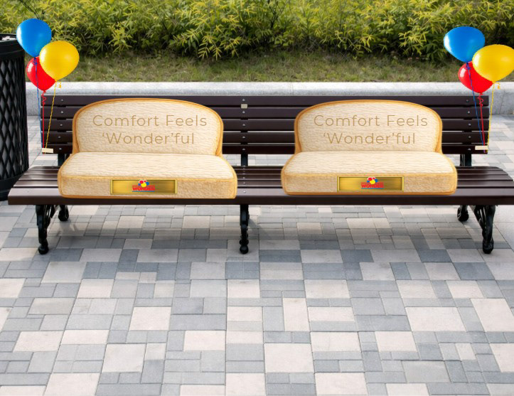 Public benches are transformed into cushioned “Wonder” seating, bringing the brand’s comfort into real life in a way people can actually experience.